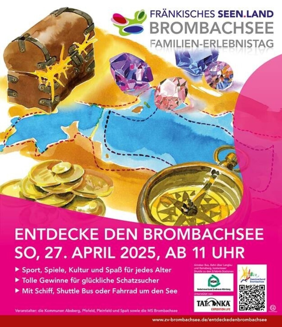 Jede Menge kleine Piraten und Schatzsucher werden am kommenden Sonntag (27.04.) rund um den Brombachsee unterwegs sein. Der Zweckverband lädt erneut zum großen Familien-Erlebnistag der Seeanlieger-Gemeinden ein. Die Kinder erwartet ein riesiger Abenteuerspielplatz. Höhepunkt wird die große Schatzsuche am Nachmittag sein. An den vier verschiedenen Stränden rund um den See gibt es 160 geheimnisvolle Schatztruhen, die freigeschaufelt werden können. Verlost werden tolle Preise. Der Erlebnistag am Sonntag beginnt bereits um 11 Uhr. Mehr Infos unter zv-brombachsee.de.