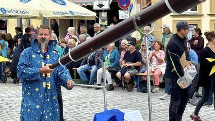 Der große Kirchweihumzug ist am vergangenen Nachmittag durch die Straßen von Gunzenhausen gezogen. Rund 60 Gruppen hatten sich angemeldet – Motto in diesem Jahr: der 400. Todestag von Simon Marius, einem berühmten Astronomen aus Gunzenhausen. Zu seinen Ehren gab es also zahlreiche Sternengucker, Astronauten und Sternenkinder zu sehen. Und der Himmel machte auch mit und zeigte sogar ein bisschen Sonnenschein.