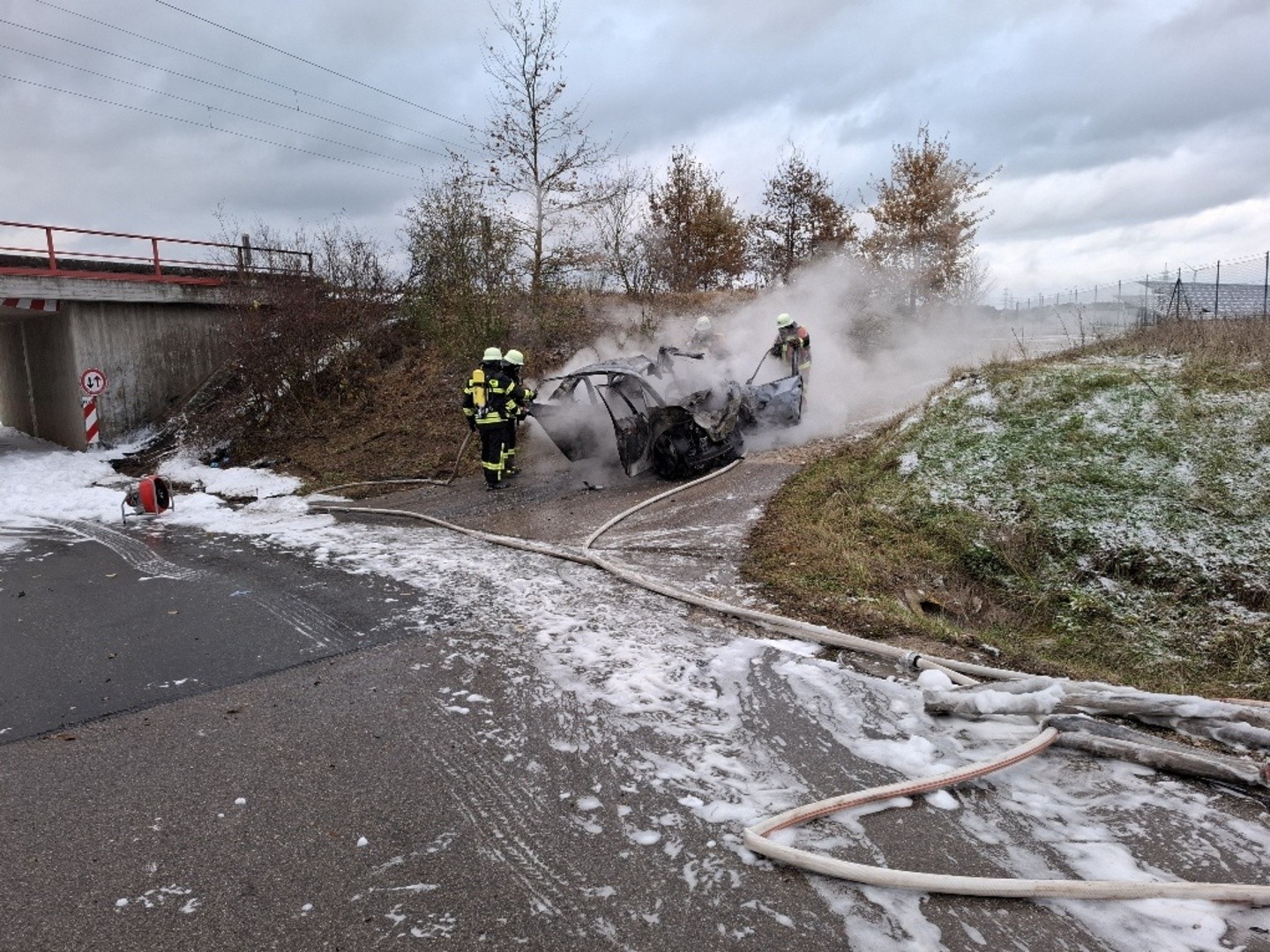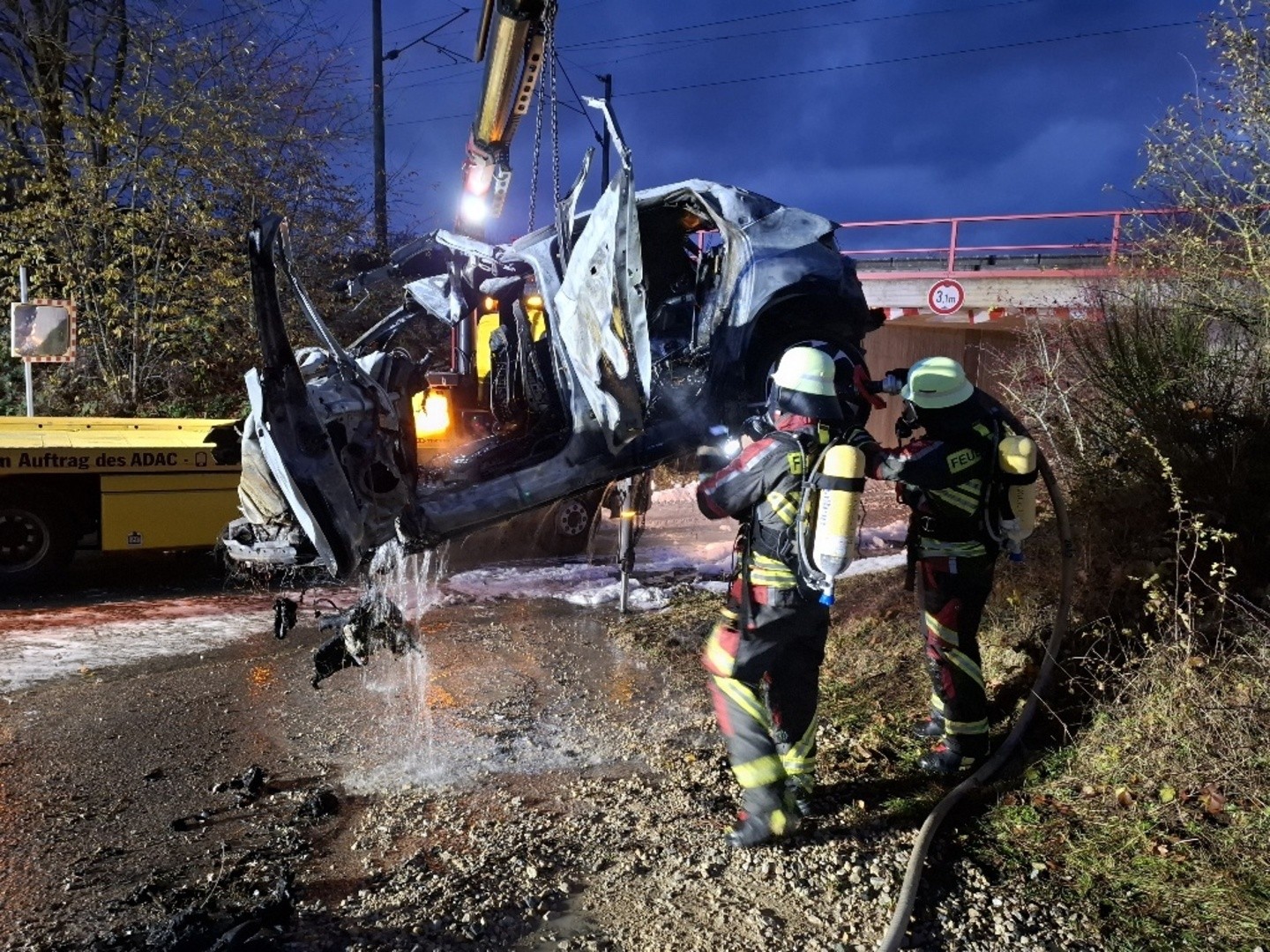 Wie berichtet, kam es Freitag auf der Straße zwischen Heilsbronn und Gottmannsdorf zu einem tödlichen Verkehrsunfall. Wie die Feuerwehr Heilsbronn und der für die Ausbildung zuständige Kreisbrandmeister berichten, sorgte der Brand des E-Autos für einen großen Einsatz. Da die Akkuzellen des Wagens durchzündeten, waren letztlich etwa 20.000 Liter Löschwasser nötig, um das Fahrzeug zu kühlen. Mittels eines Spezialfahrzeuges wurde das Auto letztlich zu einem Entsorgungsbetrieb gebracht.