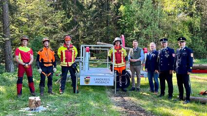 Die Feuerwehren im Landkreis Ansbach haben jetzt ein neues Übungsgerät: einen Spannungssimulator. Oft wird die Feuerwehr nicht nur zu Bränden gerufen, sondern auch zu umgestürzten Bäumen. Diese bergen allerdings oft die Gefahr, dass sie unter Spannung stehen und somit beim Entfernen schnalzen können. Um das Risiko im Einsatz zu minimieren, können die Männer und Frauen jetzt an dem neuen Gerät den Umgang mit unter Spannung stehenden Bäumen üben. Zur Funktion Kreisbrandmeister Raimund Großberger: