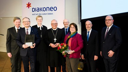 Beim ersten Jahresempfang von Diakoneo hat der Vorstandsvorsitzende Dr. Mathias Hartmann eine positive Bilanz der Fusion der Diakonie Neuendettelsau mit dem Diak Schwäbisch Hall gezogen. "Die Entscheidung für die Fusion war gut und richtig. Diakoneo lebt und wird gemeinsam zu einem modernen diakonischen Unternehmen weiter entwickelt", sagte Hartmann vor rund 600 Gästen im Germanischen Nationalmuseum in Nürnberg. Bei dem Empfang wurden dann auch die diesjährigen Löhe-Medaillen verliehen. Zum Beispiel an Anna-Maria Wöhl, der Bürgermeisterin von Bruckberg.