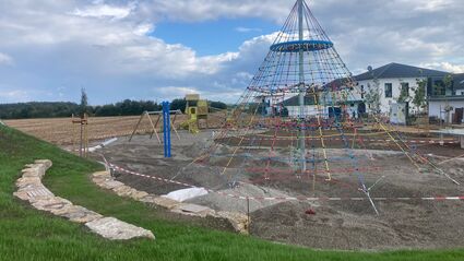 Spielplätze haben die meisten Städte und Gemeinden. Schillingsfürst hat aber jetzt sogar einen Mehrgenerationenpark. Zu dem Mehrgenerationenpark im Neubaugebiet Marienhof gehören eine große Kletterpyramide, Tischtennisplatte und eine Wellenrutsche. Außerdem gibt es Schaukeln, auf die sich ausdrücklich auch mal die Eltern setzen können. Und Oma und Opa mit Rollstuhl oder Rollator können auf der Integrationswippe auch mit den Enkeln ihren Spaß haben. Welche Idee dahinter steckt, schildert uns der 1. Bürgermeister Michael Trzybinski: