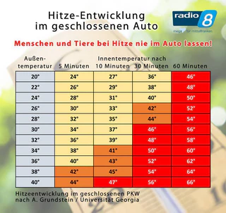 Die entsprechende Grafik zur Hitze-Entwicklung im geschlossenen Auto finden Sie auch auf unserer Radio 8-Facebookseite.