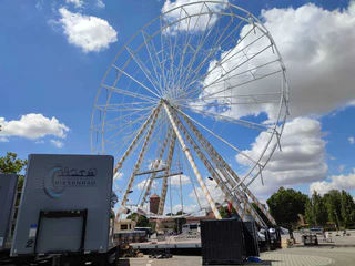 Aus fast 40 Metern Höhe auf die südliche Altstadt von Rothenburg schauen? Das geht meistens nur mit einer Drohne oder einer Feuerwehrleiter. Doch ab Freitag kann jeder hoch hinaus. Und zwar mit einem Riesenrad. Die Familie Hofmann-Jehn macht mit ihrem Riesenrad Station bei uns in Rothenburg. Vor kurzem war das Riesenrad aber noch bei der Formel 1 im Wüstenstaat Bahrain im Einsatz - und diente Fahrerlegende Lewis Hamilton als Fotohintergrund. Fred Hofmann-Jehn, wie sind Sie dazu gekommen und was war das für ein Erlebnis?